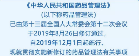 國家藥監(jiān)局關(guān)于貫徹實施《中華人民共和國藥品管理法》有關(guān)事項的公告(2019年第103號)
