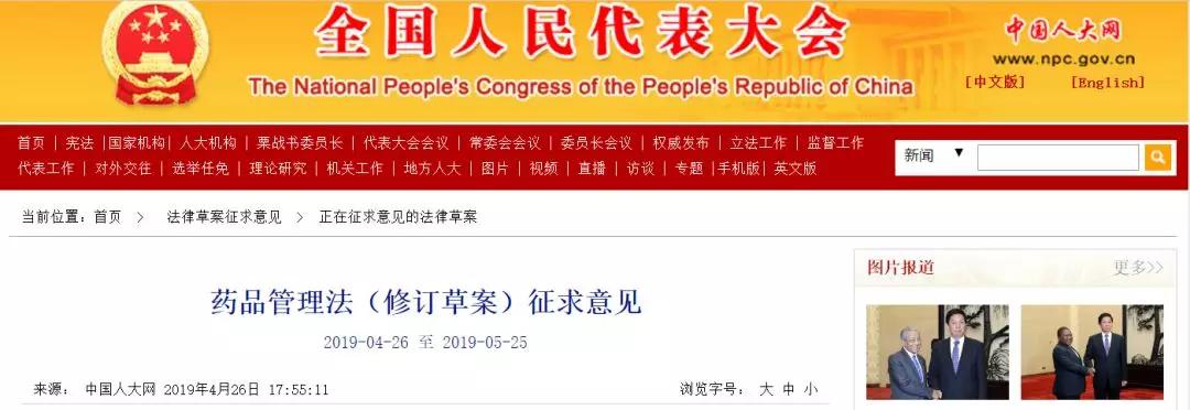 28 19-09醫藥網4月28日訊 藥品管理法(修訂草案)昨日公布,向社會征求意見,此后交付三審,三審后進一步表決,如果表決通過,新的藥品管理法將正式出臺。